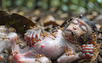 More ants crawl onto baby’s tiny body’s baby cries in pain but can’t escape