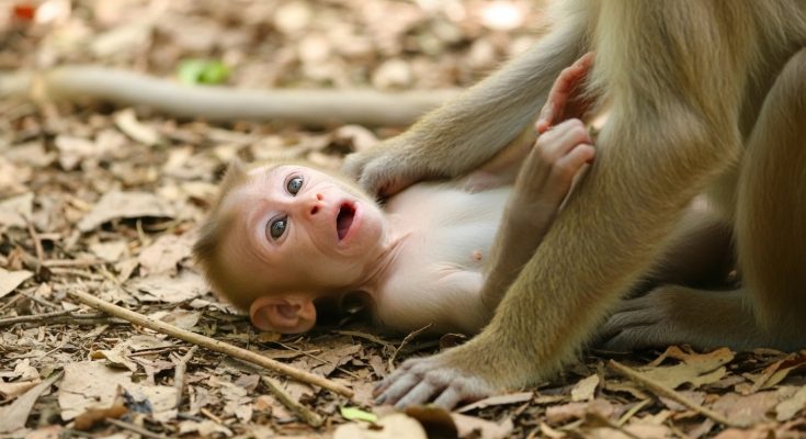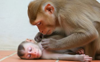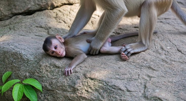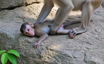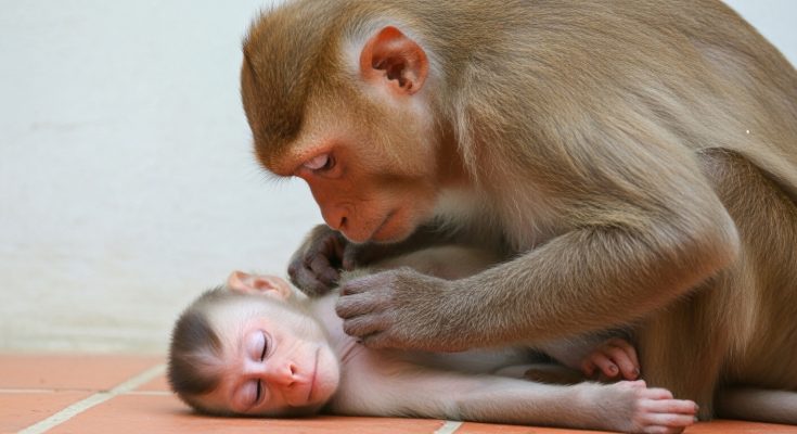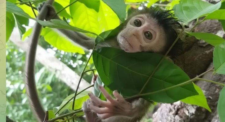 The mother monkey was completely exhausted. Her body felt heavy, like every step cost too much strength. Her arms ached from days of carrying, feeding, protecting, and watching. Her eyes …
