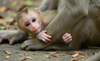 Her body felt heavy, like every step cost too much strength. Her arms ached from days of carrying, feeding, protecting, and watching. Her eyes were dull, no longer sharp with alertness. She sat quietly, breathing slowly, as if even breathing was hard work now.