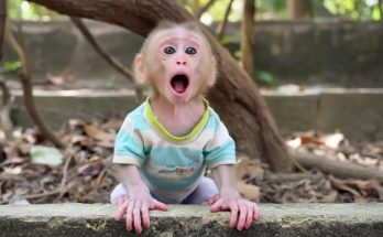 The baby monkey sat alone on the cold ground, his small body trembling as the forest moved around him. His mouth opened wide again and again, calling out with all …