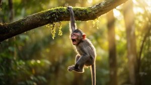 The forest was loud that morning, filled with birdsong and the rustling of leaves. High in the canopy, a monkey family moved carefully from branch to branch, searching for ripe fruit after a long night of rain.