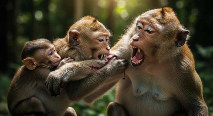 Then came the bite. The big monkey sank his teeth into the baby’s soft arm. The cry turned into a scream—high-pitched, full of pain and fear. The small monkey struggled desperately, kicking his little legs, clawing at the bigger one with his fragile hands. But he was no match for the strength of his attacker. Blood matted his fur where the bite had torn his skin.