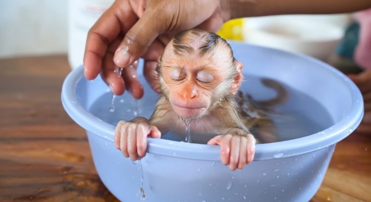 She sat beside the tiny baby monkey, watching every small movement, every breath. The baby lay curled against a soft cloth, his body thin and weak from days of hunger and sickness. His eyes opened only halfway, cloudy with exhaustion, yet they followed her wherever she moved.