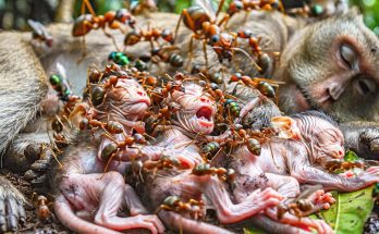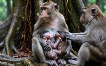 The jungle awoke with its usual chorus of birds, chattering branches, and rustling leaves—but beneath those familiar sounds, another voice trembled through the undergrowth. A newborn monkey, barely hours old, …