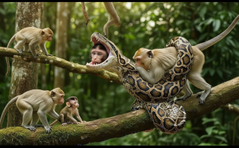 The afternoon sun hung low, warming the treetops while casting long shadows across the forest floor. A troop of monkeys gathered in the branches, grooming, resting, and searching for leftover …