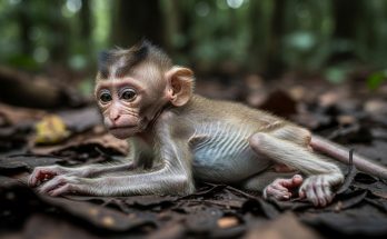 Pity Baby Monkey Stuck Under the Tree – Very Weak, So Thin Read More