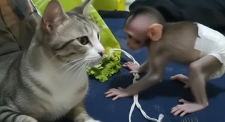 This story is not about blame. It is about nature, instinct, and fragile beginnings. When cats and baby monkeys meet, it reminds us how delicate young life is, and how quickly curiosity can turn into fear.
