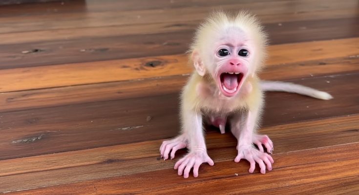 The baby monkey was crying alone, its small voice trembling in the quiet space around it. Each cry sounded softer than the last, worn down by fear and exhaustion. The baby did not cry to be loud. It cried because it needed comfort, because being alone felt too big and too frightening for such a tiny heart.