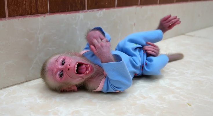 Curled softly on the ground, the cute little baby monkey remained there—very sleepy, very hungry, but still breathing, still hoping. Even in exhaustion, its tiny heart held trust. Trust that food would come. Trust that warmth would return. Trust that rest, even for a moment, was allowed.