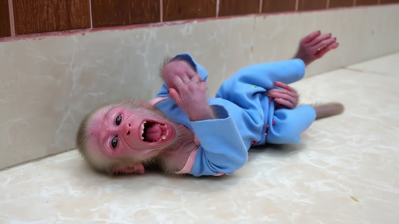 The cute little baby monkey was very sleepy and hungry, caught between two powerful needs its tiny body could hardly balance. Its eyelids drooped again and again, heavy like leaves after rain, yet its empty stomach kept pulling it back to wakefulness. The baby did not know whether to cry or rest. It only knew it needed milk and warmth.