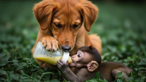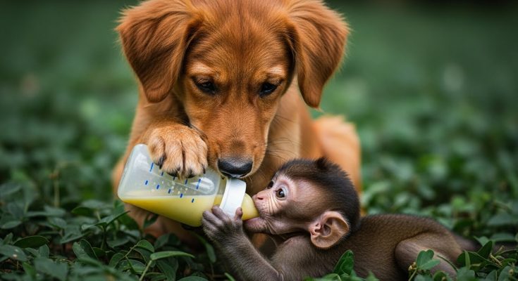 In a world where survival often demands competition, one old dog chose compassion over hunger—and a group of monkeys learned that help can come from the most unexpected friend.