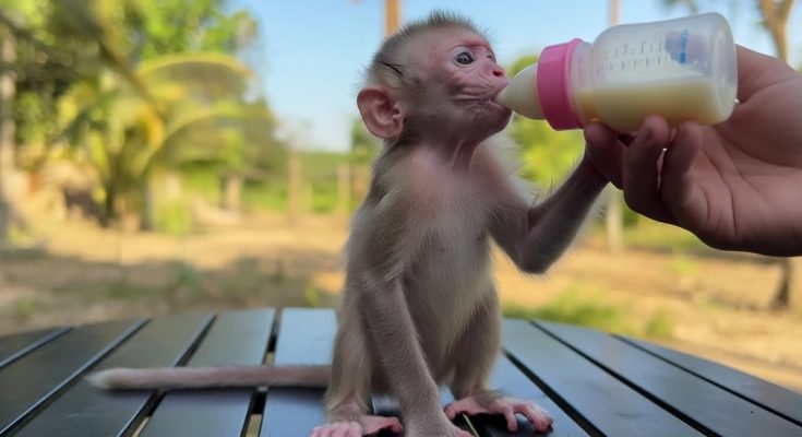 In the heart of the forest, life continued. A cute baby monkey slept peacefully, fed with love, protected by sacrifice, and surrounded by quiet kindness. In that simple feeding moment, the meaning of care, survival, and compassion was written without words. 🐒❤️