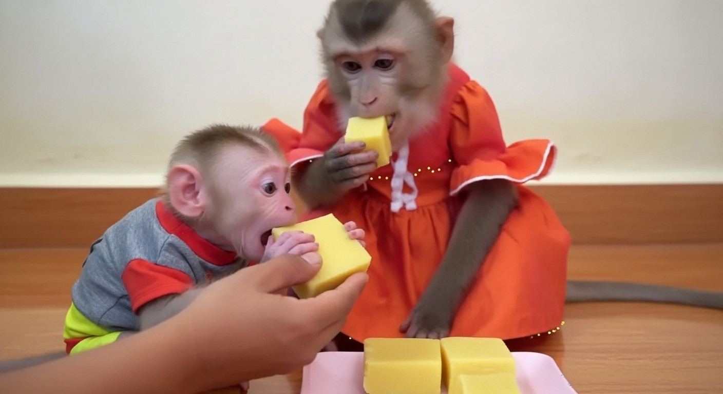 And as they rested together, crumbs around their mouths and fruit stains on their fur, they looked less like desperate little creatures and more like what they truly were—babies learning, one meal at a time, that food will come, and they don’t always have to rush. 🐒💛