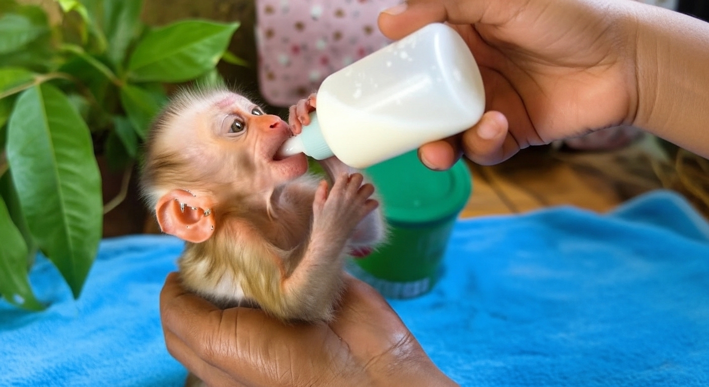 In that simple moment—a hungry baby holding a milk bottle—there was a powerful truth: sometimes, love is not big or loud. Sometimes, it is just warm milk, gentle hands, and staying close until the hunger is gone. 🍼🐒💛