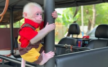 In the heart of a quiet jungle morning, a tiny baby monkey clung weakly to a low branch, his small hands trembling. His fur was thin and soft, his belly slightly sunken, and his eyes full of tears. He was only a few days old, still helpless, still learning to hold onto his mother’s warm body — but today, that warmth was gone. His mother sat nearby, grooming herself calmly, her face blank, her movements slow and uncaring. The baby’s cries echoed softly through the air, but she didn’t turn her head.