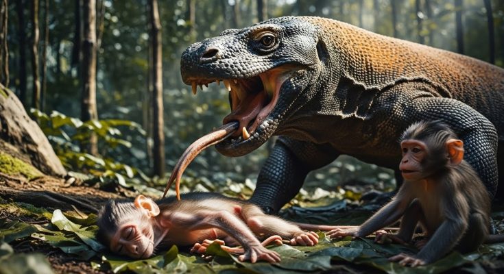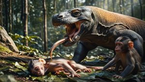 The Komodo dragon returned its attention to the remaining infant. Its heavy claw lifted. The tiny monkey tried feebly to crawl away, but the dragon’s shadow fell over it like a final curtain.
