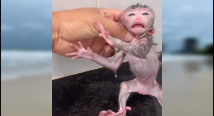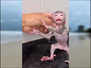 The jungle had just begun to wake, the morning mist clinging to the leaves as the sun’s first light crept between the branches. Hidden deep in the heart of this forest, a tiny cry echoed through the canopy. It was the voice of a newborn monkey, a fragile little creature that had only just entered the world. Its body was impossibly small, its fur thin and damp, and its eyes—still adjusting to the brightness of life—looked wide and uncertain.