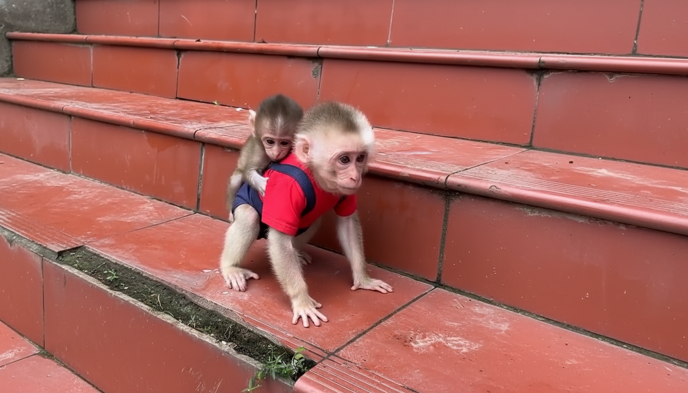 After feeding, the little one became playful. He climbed onto her shoulder, tugged gently at her ear, and tried to grab her face with his tiny hands. She responded with patient affection, pretending to nibble his fingers lightly. When he almost slipped, her hand shot out instantly, catching him before he could fall.