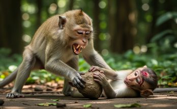 She had become restless, anxious, and easily angered. The troop had moved into a new area where food was scarce. The older males dominated the best fruit trees, and the mothers often had to fight to feed their babies. Stress weighed heavily on Rina’s mind. Hunger and fear made her temper unpredictable — and little Tomi would soon feel that pain more than anyone.