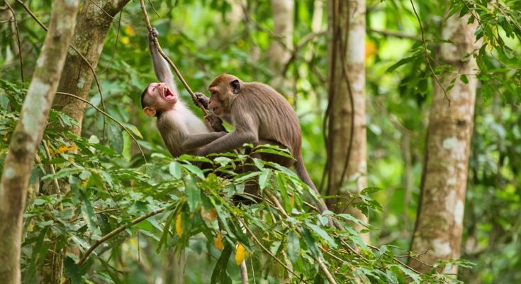 Monkey Fighting Her Baby on the High Tree -A Tragic Tale of Pain and Crying in the Wild