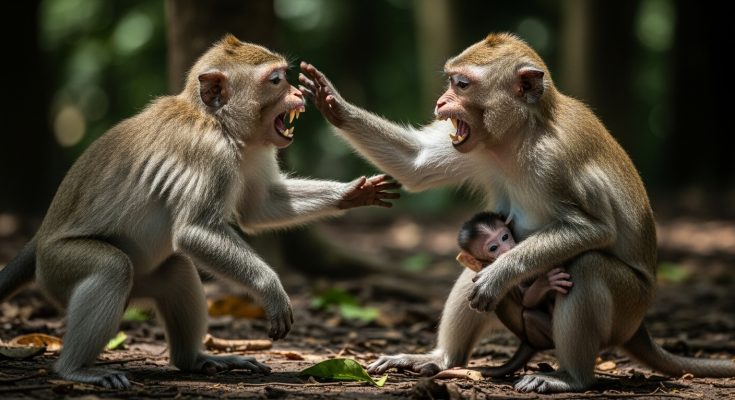 But danger in the forest often came not only from predators on the ground but also from within the troop itself. Among the monkeys was a large, aggressive male with a cruel streak. He was known for his violent temper and his obsession with babies. Sometimes, in his twisted nature, he tried to snatch them away—not to raise them, but to control the mothers, to remind them of his power.