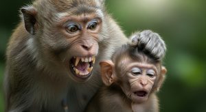 The baby monkey didn’t understand why his mother was so angry. He had only been playing, climbing on a small branch nearby, when suddenly she pulled him down and scolded him loudly. Her sharp cries echoed through the trees, frightening the baby so much that he froze. Then, in a burst of anger, the mother reached out and pulled his soft hair, hard.