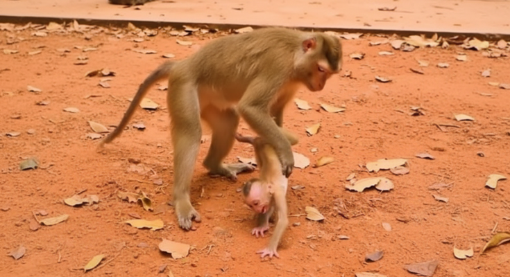 A gentle breeze moved through the trees, rustling leaves and carrying the sweet smell of flowers. The baby monkey sniffed the air, then glanced down at the water. Tiny ripples reflected the sunlight like a thousand little stars. It reached out one hand, curious, and touched the surface. The water was cool and soft. A soft squeak escaped the baby’s mouth.