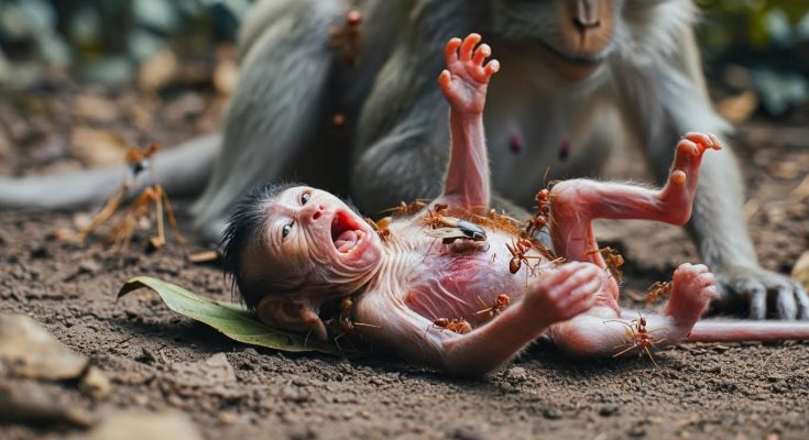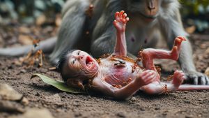 As the sky brightened, Ayla gathered all her strength and pulled her babies close beneath her chest. The monkeys stepped back, watching carefully, making sure the little family was safe.