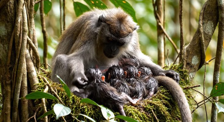 No monkey had seen such a rare birth in many seasons. Most mothers carried one baby, sometimes two, but six… six was unheard of. And for an old mother like her, it was almost beyond what her tired body could bear. Yet she climbed anyway, searching for a safe place where predators could not reach, where the wind would be her only witness.