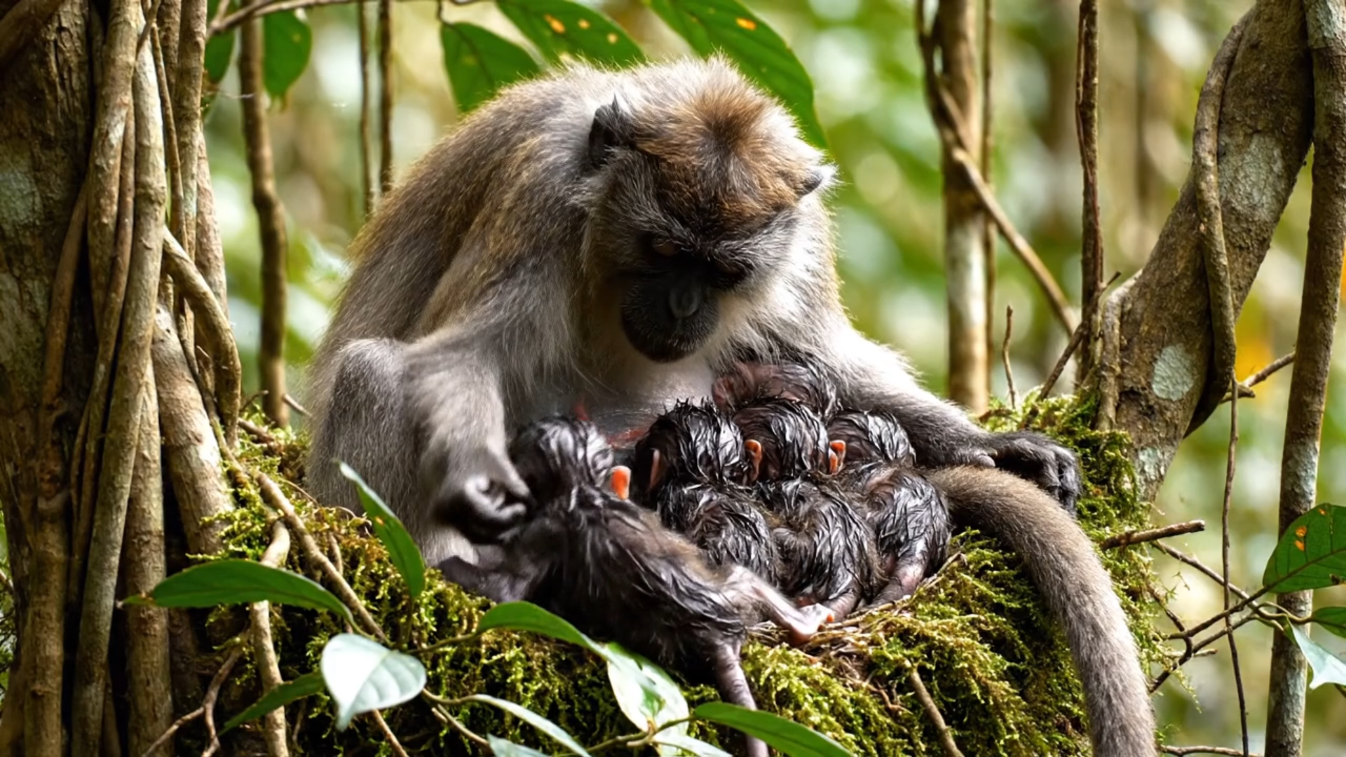 No monkey had seen such a rare birth in many seasons. Most mothers carried one baby, sometimes two, but six… six was unheard of. And for an old mother like her, it was almost beyond what her tired body could bear. Yet she climbed anyway, searching for a safe place where predators could not reach, where the wind would be her only witness.