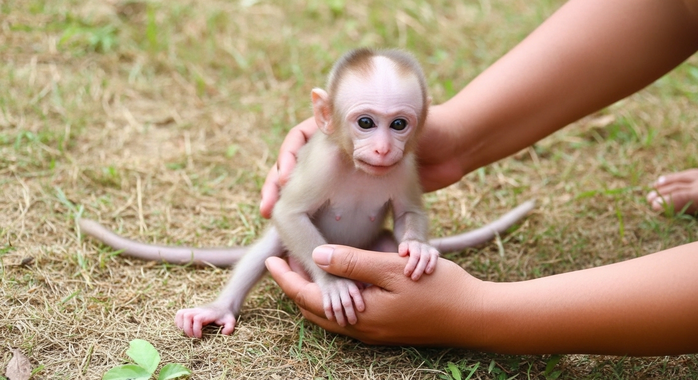 The caregiver moved quietly in the early morning light, careful not to make sudden sounds. The forest was still cool, wrapped in mist, and the baby monkey slept curled tightly on a soft cloth. His breathing was slow and shallow, his tiny fingers twitching in dreams.