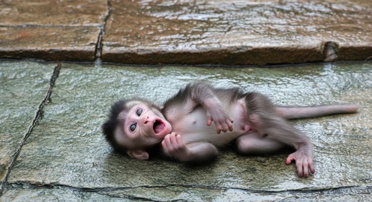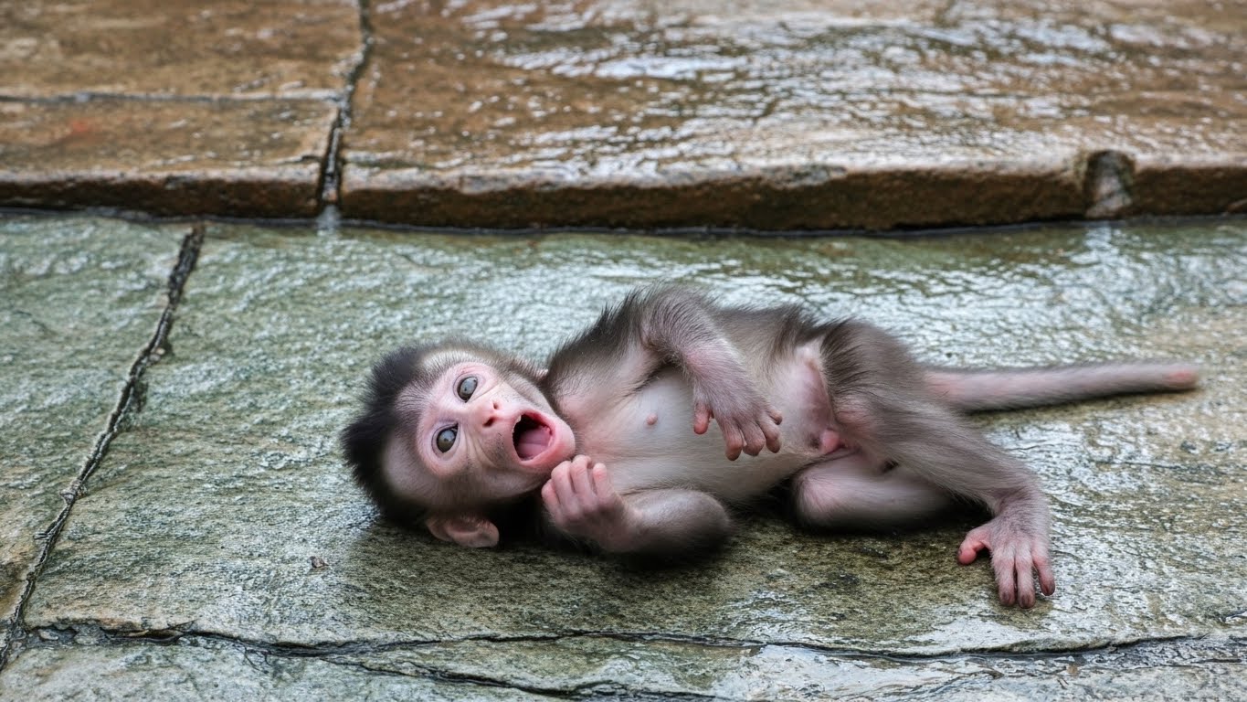The baby monkey sat alone on a low branch, its small body curled tightly, eyes wide with fear. Hunger twisted inside its tiny stomach, sharp and constant, making every breath feel heavier. The world around it felt too big, too loud, and too dangerous for such a small life. It did not know why it was alone. It only knew that something it needed was missing.