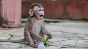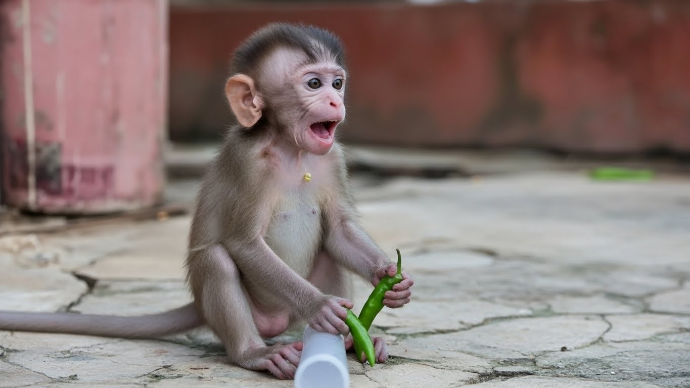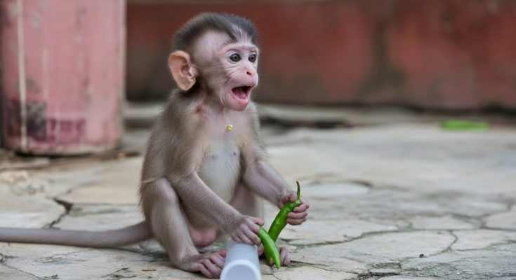 So sad—pity the baby monkey, so small, so helpless, lying quietly with eyes half-closed, too weak to cry loudly. Its little body trembled, not from fear but from exhaustion and the sharp discomfort in its stomach. Milk, which should have been comfort and nourishment, had turned dangerous. The baby did not understand why. It only knew that it hurt, and that nothing seemed to make it better.