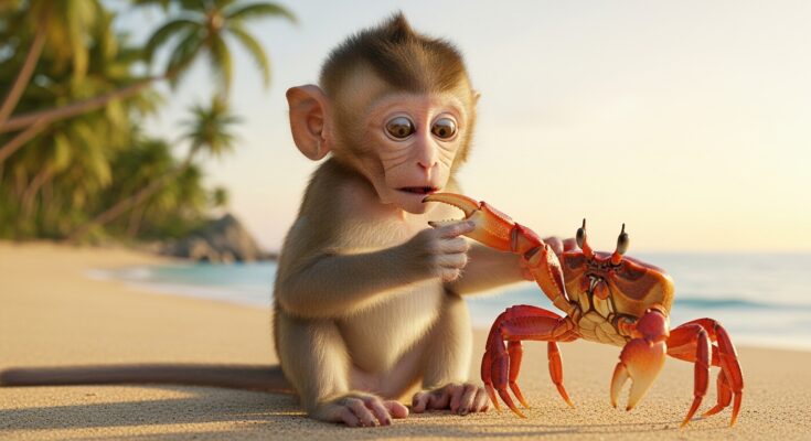 Terrified Little Monkey Meets a Crab – A Real Story of Curiosity and Fear (1993 words)