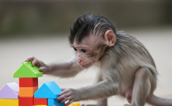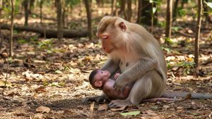 The baby monkey looked up at its mother with pure innocence and careless trust, its wide eyes shining softly as if the whole world lived in her face. Curled close to her chest, the baby tilted its head slightly, studying her every movement, every breath, as though trying to memorize the feeling of safety she gave.