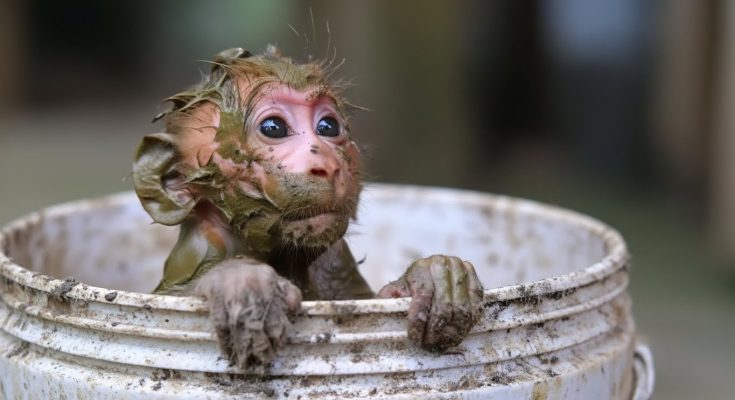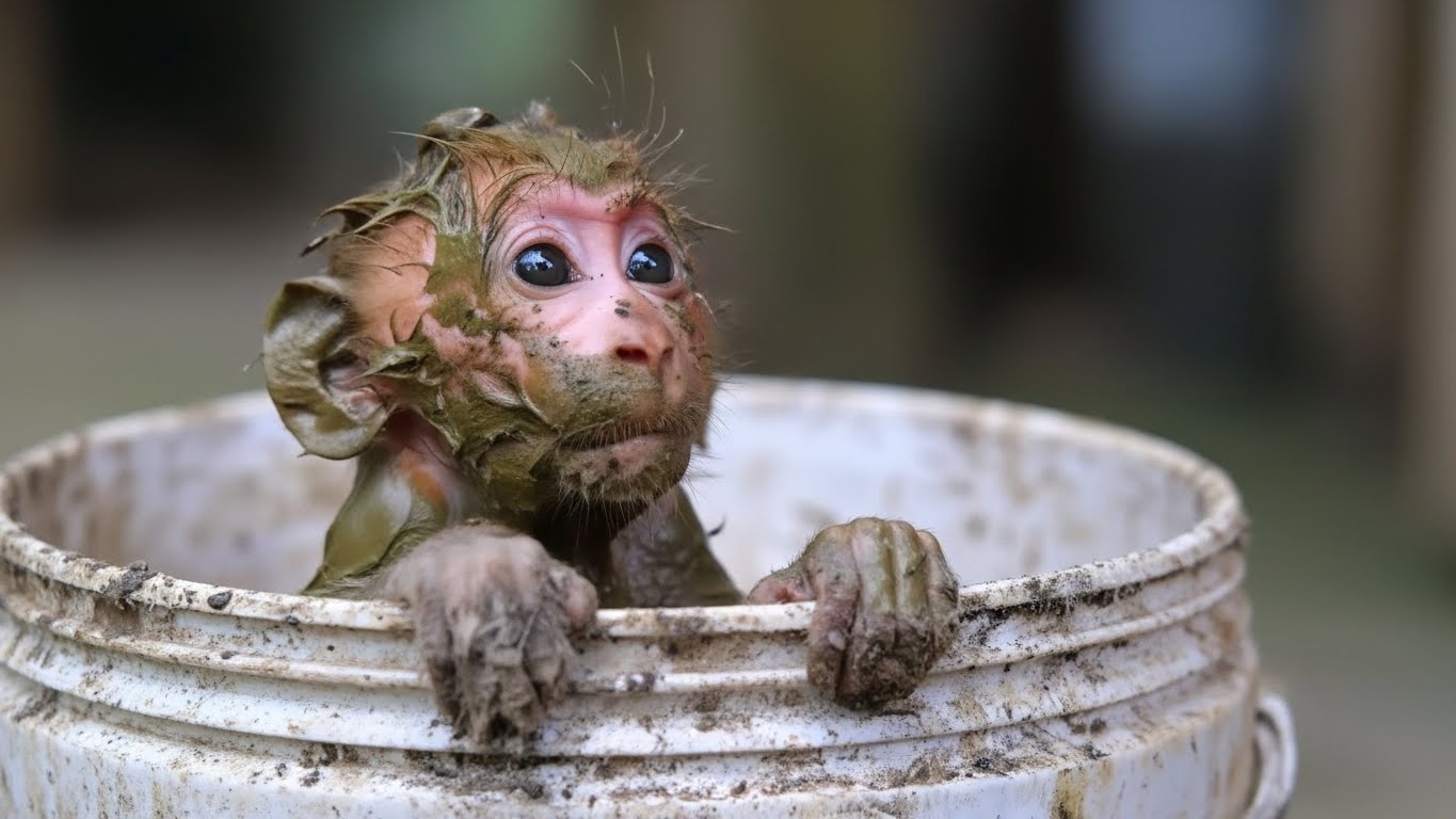The baby monkey was stuck, clinging to a thin branch that trembled in the cold wind. Night had fallen faster than expected, and the warmth of the day disappeared without warning. Mist rolled through the forest, wrapping everything in damp silence. The little monkey’s body shook, not from fear alone, but from the biting cold that crept into its bones.