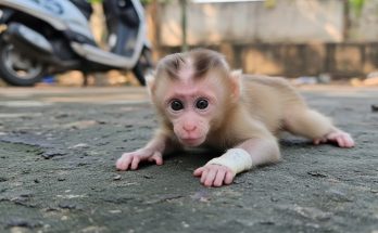 The little monkey closed his eyes, tears sliding down his cheeks. Between hunger and cold, he fought to stay awake. Each breath came slow and weak. Though he had found a taste of food, the night’s chill still clung to him like a shadow. His small heart beat bravely, but it was clear—this poor baby was struggling against a world far too big, far too harsh for someone so fragile.