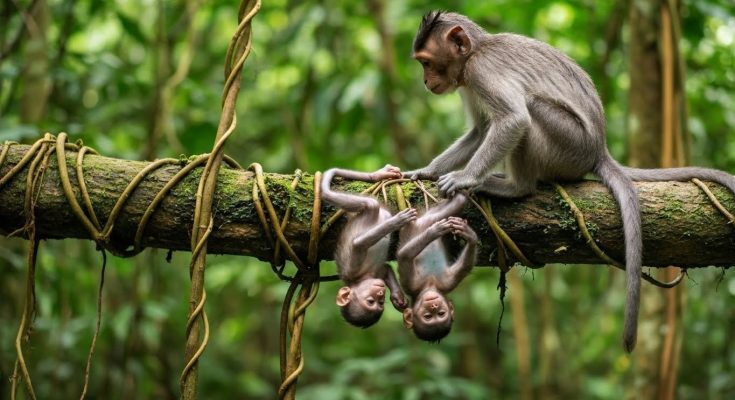 The forest was quiet except for the trembling breaths of a young mother monkey named Lara. She lay curled at the base of a thick tree, her fur damp with sweat, her body shaking from exhaustion and pain. She had already delivered two tiny newborns—weak, silent, barely moving. But something inside her told her it wasn’t over.