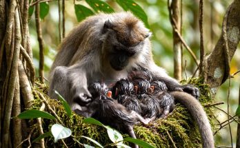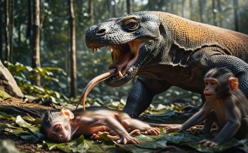 The younger baby monkey, weaker and more frightened, called out again — a long, sad cry that broke the morning silence. The sound carried far, a desperate plea for help. The older one joined in, their voices rising together, trembling with grief.