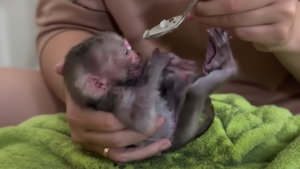 The baby was small enough to fit completely within its mother’s arms, a fragile life wrapped in soft fur and quiet breaths. From the moment it was born, the world felt too large and too cold. Night winds slipped through the forest, leaves whispered endlessly, and danger seemed to hide behind every sound. But in the middle of all that uncertainty, the mother monkey stayed close, holding her baby with a warmth that no cold could fully steal.