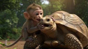 As he hopped down from his favorite tree, he noticed a strange creature slowly crossing the sandy path. It wasn’t jumping. It wasn’t swinging. It wasn’t even hurrying. It was moving like time itself had decided to take a nap. The creature was a tortoise named Old Stoneback, famous in the park for his patience and calm.