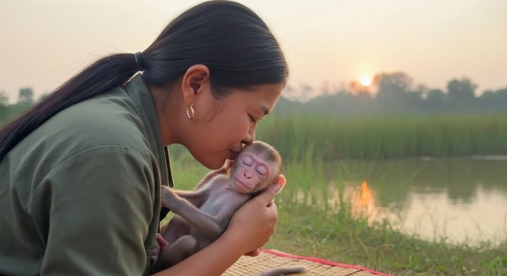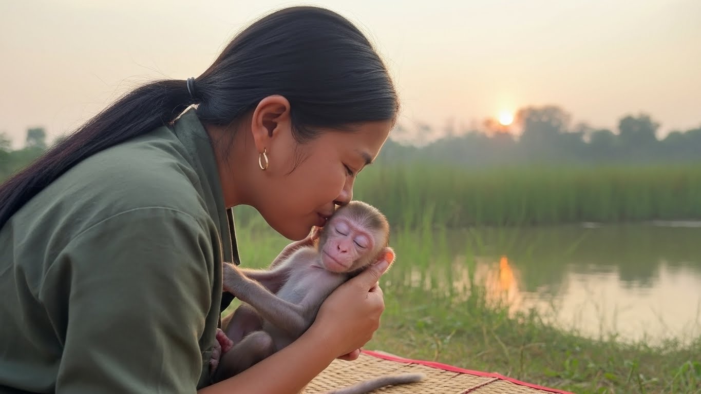Seconds stretch longer than they should. The baby monkey’s fear grows heavier, pressing against its chest. It remembers warmth, milk, gentle grooming, the soft sounds its mother made. Those memories comfort and hurt at the same time.