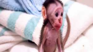 Something is clearly wrong with the baby. At first glance, it may look like simple crying, but if you watch closely, the signs tell a deeper story. The baby monkey sits alone, its small body tense, eyes wide and restless. It cries, pauses, then cries again—not from play or curiosity, but from real distress.