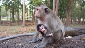 The baby monkey sits on the ground, crying softly, its tiny hands shaking with hunger. Its eyes search everywhere, hoping to see its mother’s familiar face. The cries grow louder, then weaker, filled with fear and need. From the outside, it feels impossible to understand how a mother could ignore such suffering. But nature does not always follow human emotions.