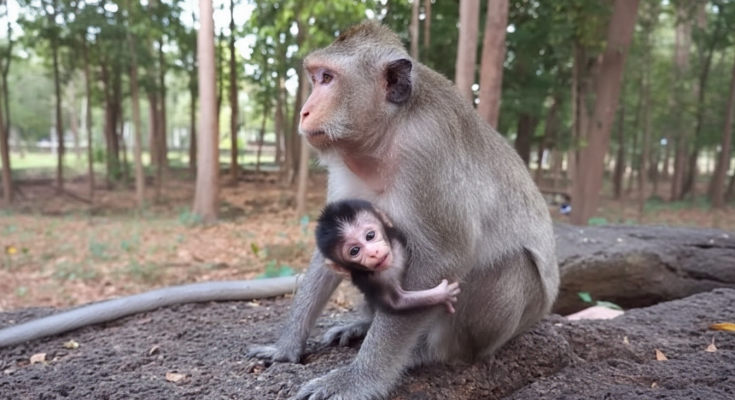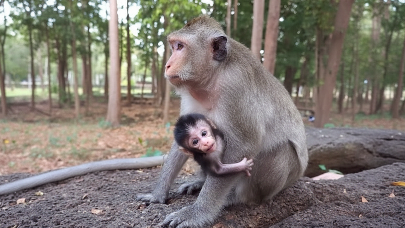 Sometimes, the mother monkey is not uncaring—she is overwhelmed. She may be extremely tired, injured, or sick. Caring for a newborn requires a lot of strength. If the mother herself is weak or starving, her body may not produce enough milk. In those moments, she may move away, not because she does not love her baby, but because she is struggling to survive.